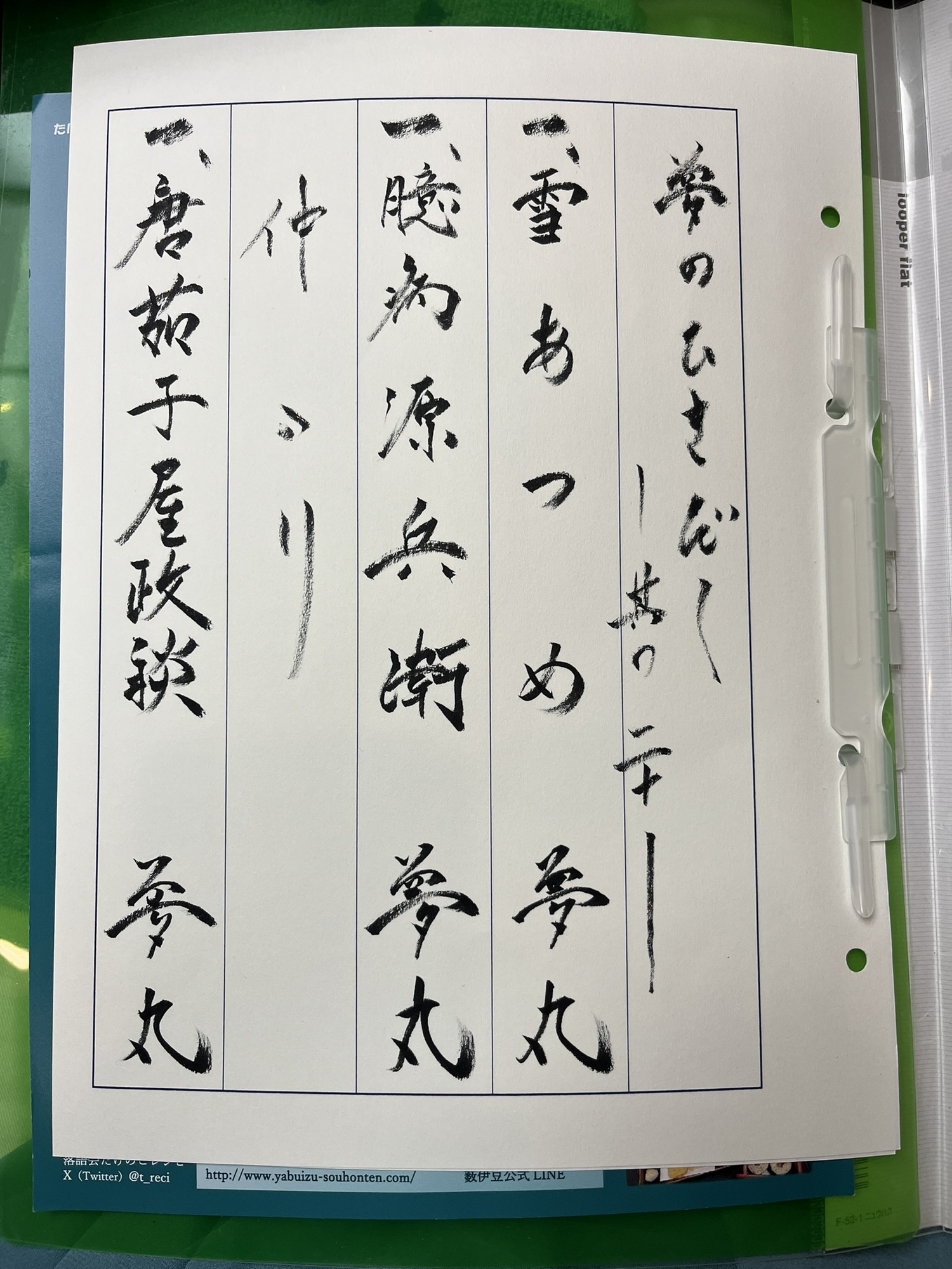 2024-07-27 7/27日本橋・薮伊豆総本店 3階広間「夢のひきだし 其の二十 ~夏の噺 その2~」。 落語 暑いし、電車は混んでいるし、突発的な何かしらのアクシデントに備えて、少し早めに出発。 で、何事も無くだいぶ早めに日本橋駅へ到着。涼みがてら、高島屋さんのお菓子売り場をウロウロ。大好きなクッキーを買ってから、薮伊豆さんへ~。 --- 夢丸 ■■ 雪あつめ(作:井上新五郎正隆) 夢丸 ■ 臆病源兵衛 ~仲入り~ 夢丸 ■□ 唐茄子屋政談 --- 夏の噺を3席。加えて、仲間たちと行った長野落語合宿の話をたっぷりと。 夢丸師匠って本当に面白い。ありがたいなぁ。